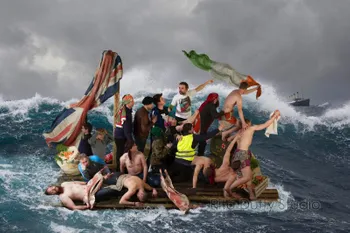 Brexit is finally upon us. Britain will leave the European Union on Friday night at 11pm. To mark this momentous day, an artwork by the artist Rita Duffy, The Raft Project 2019, will hang on the side of the Trinity Long Room Hub building until Wednesday, February 19th.
