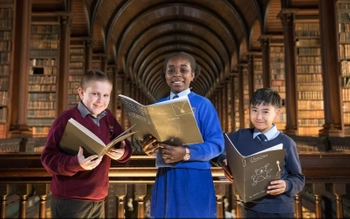 Leabhair a scríobh agus a mhaisigh leanaí scoile i mBaile Átha Cliath le cur le taispeántas Leabhar Cheanannais i Sean-Leabharlann Choláiste na Tríonóide