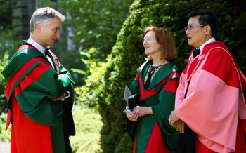 Painter Camille Souter, poet, Grigory Kruzhkov, Singaporean diplomat and businessman, Stanley Quek, and optical physicist, Margaret Murnane were conferred with honorary degrees.