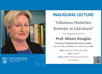 Professor Aileen Douglas will deliver her Inaugural Lecture ‘Fabulous Histories: Animals in Literature’ on Tuesday 7th November.